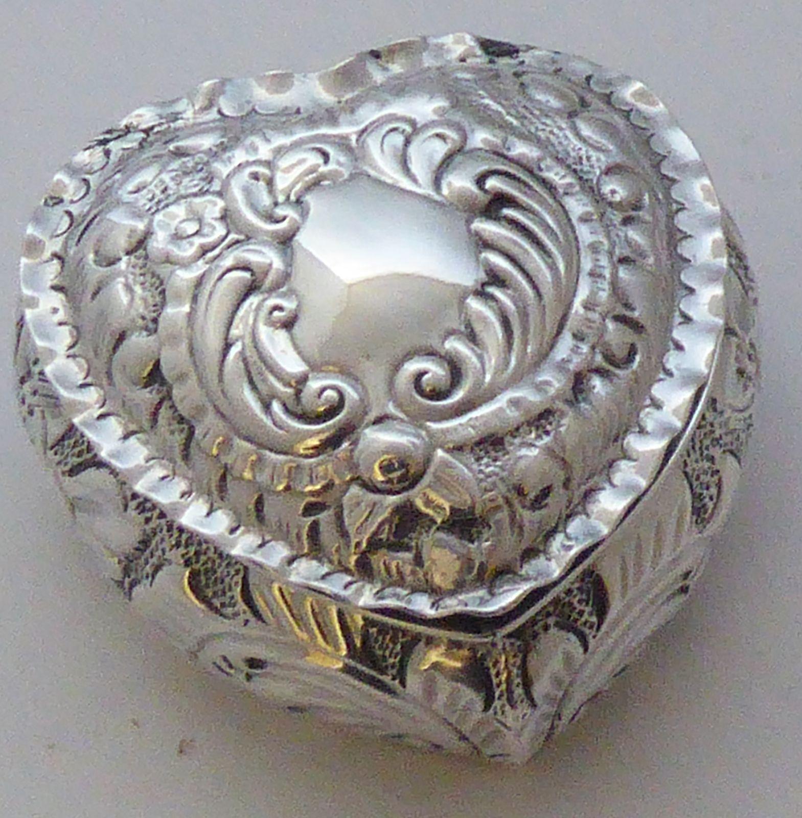 Victorian Valentine Love Heart 1887 Solid Silver Pill Jewellery Earring Box