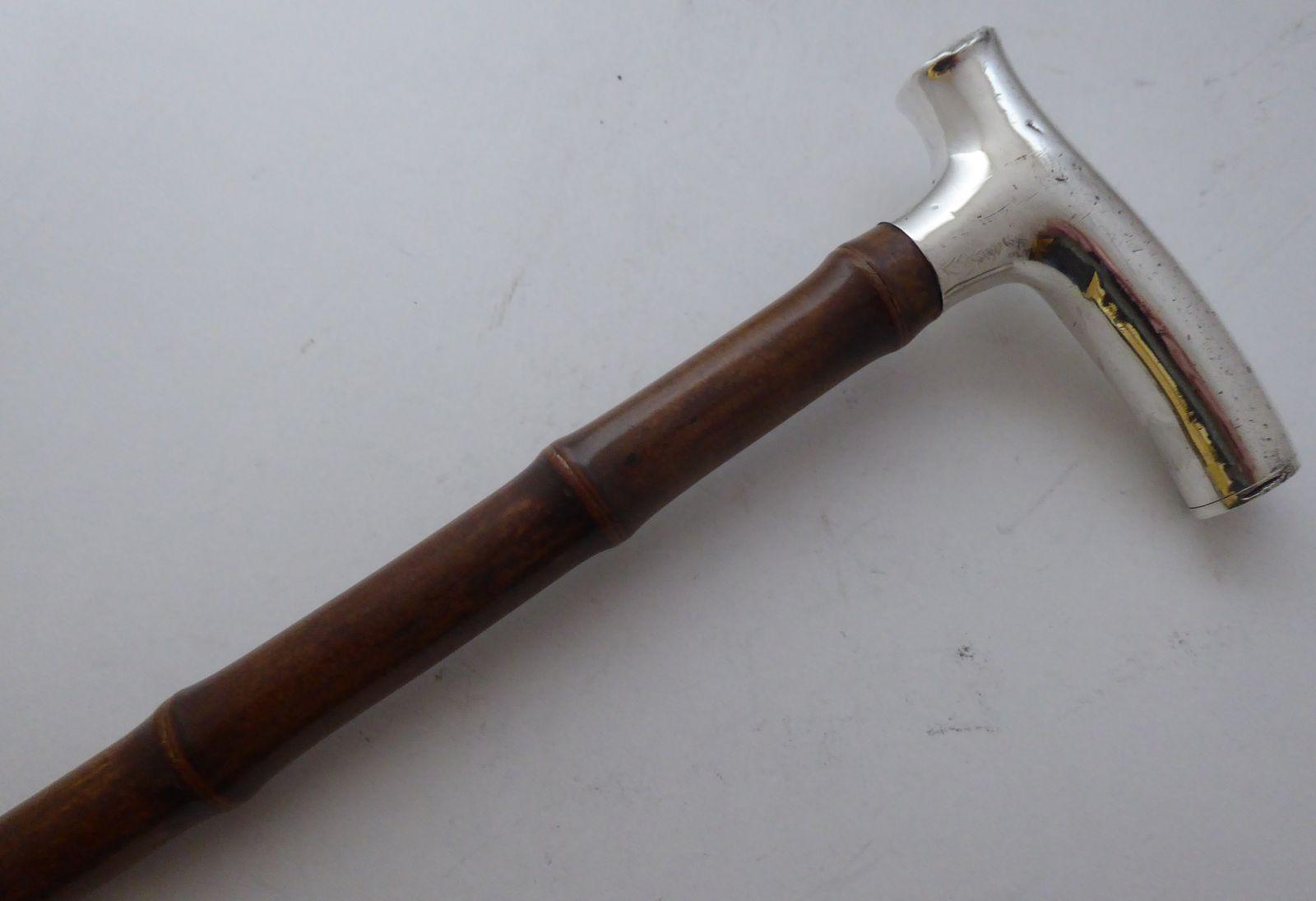 Victorian Vesta Case Walking Stick Cane Silver Plated Pommel Bamboo Shaft