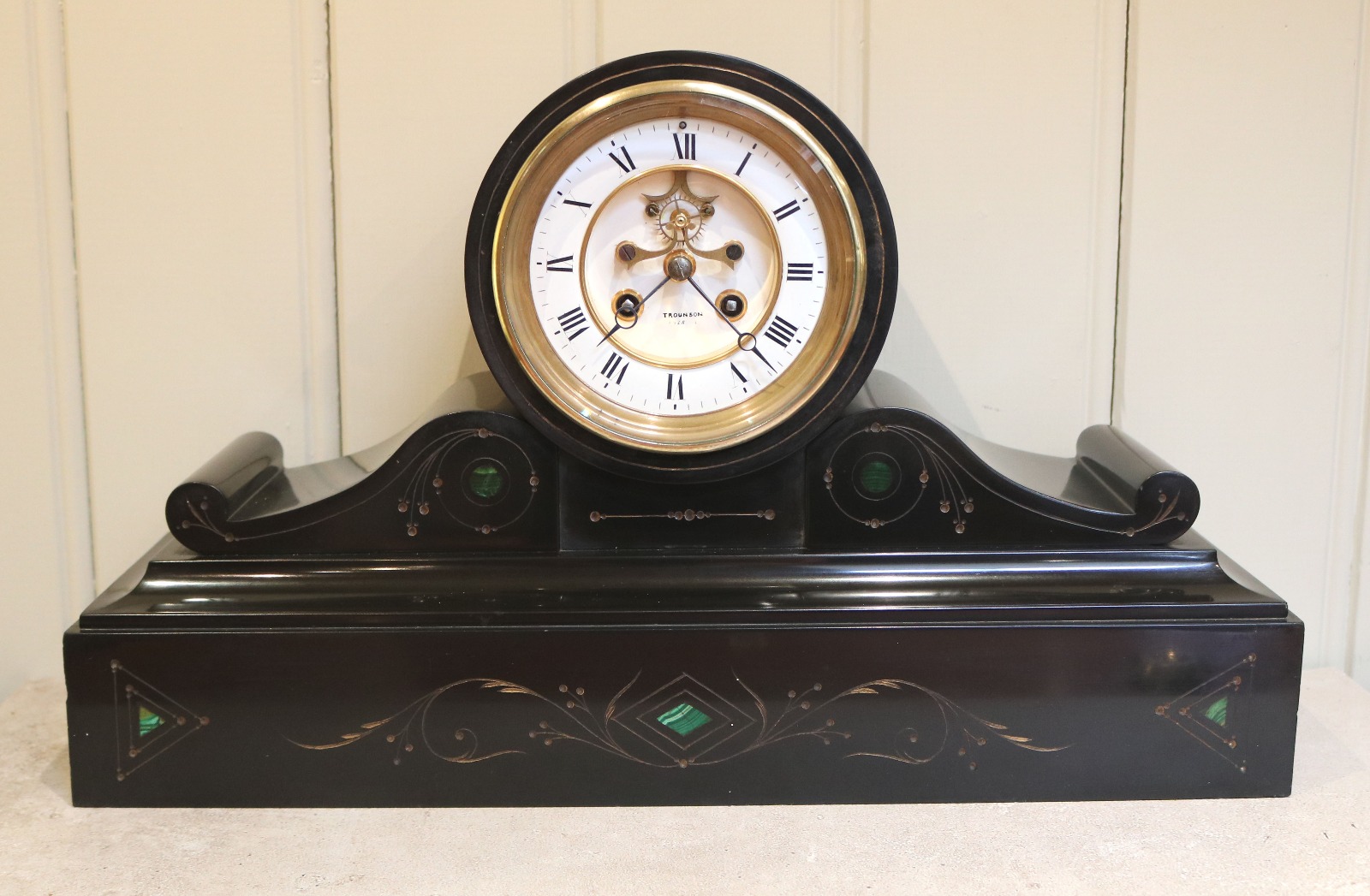 Victorian Visible Escapement Black Slate Mantel Clock, France c.1870 (1 of 1)