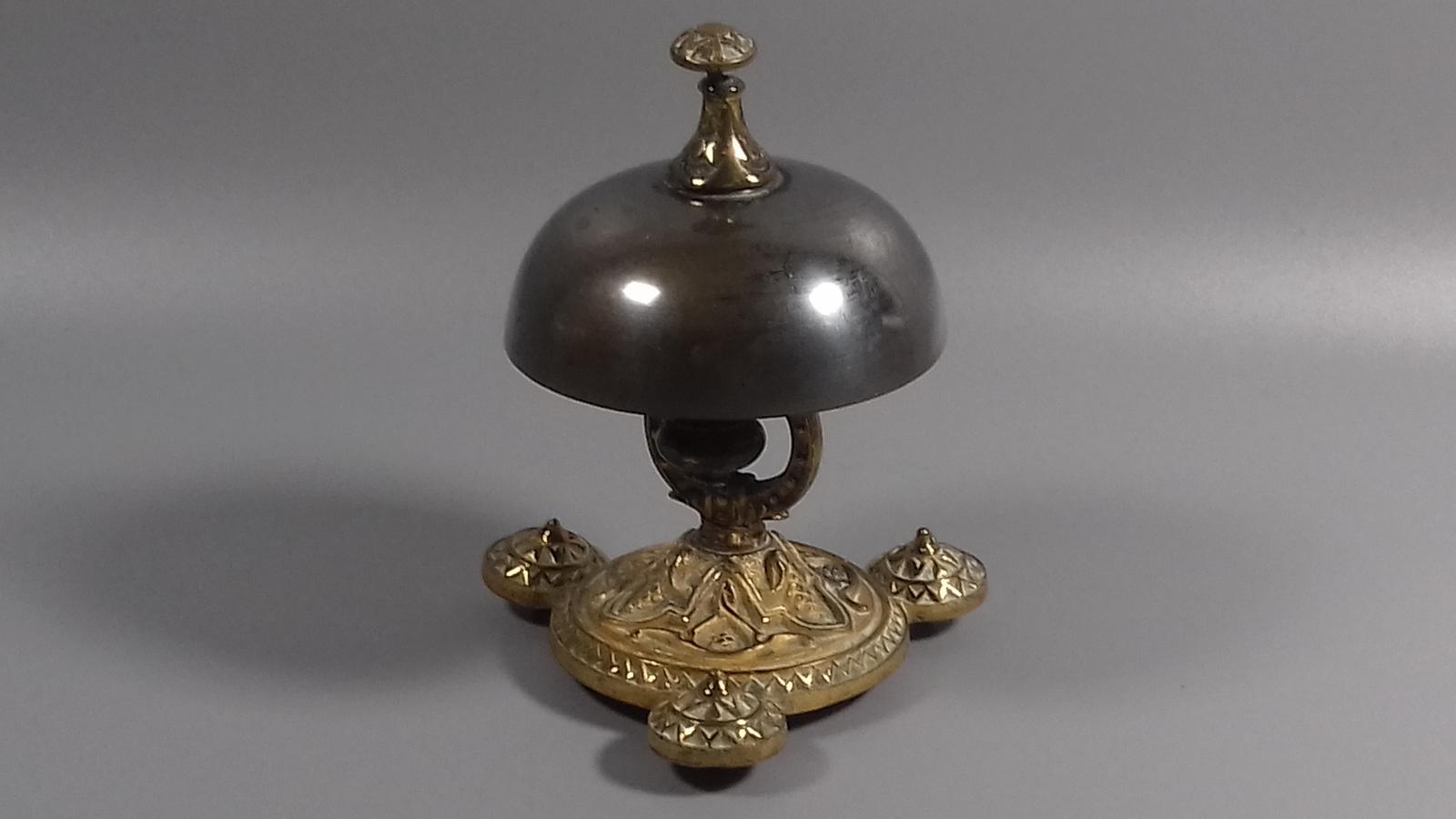 Victorian W Tonks detached action gilt metal hotel reception bell