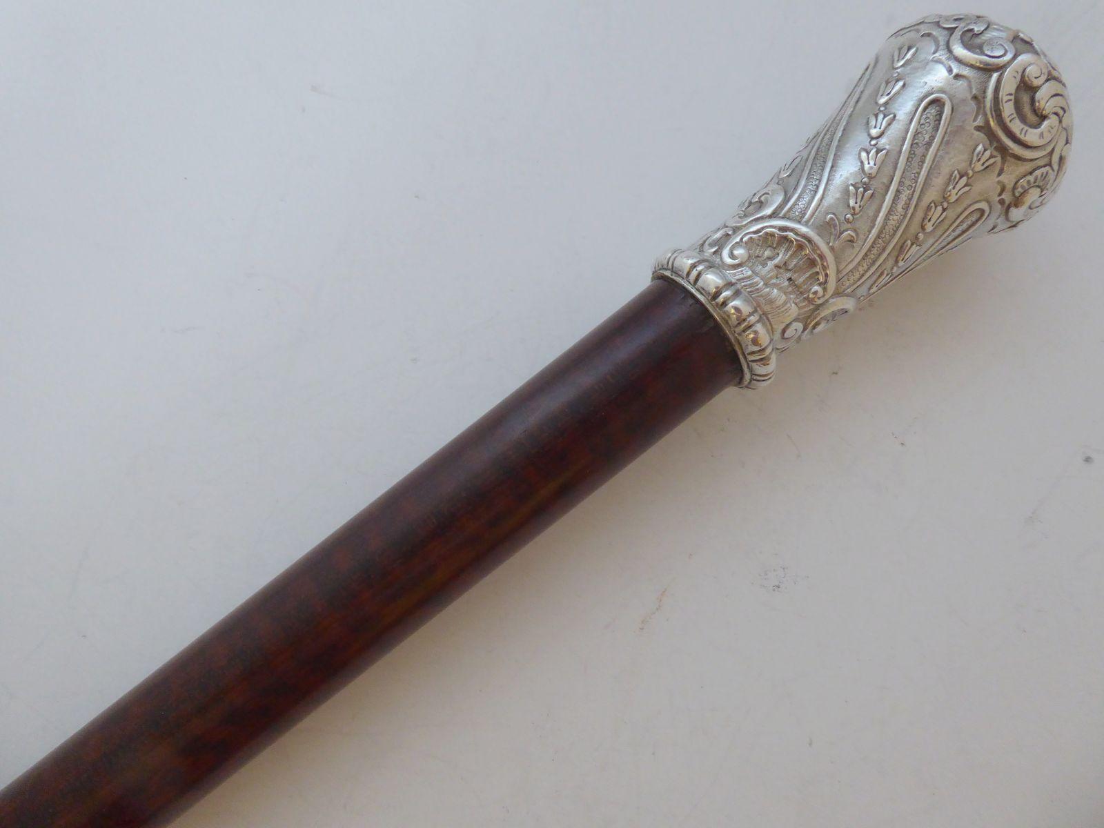 Victorian Walking Stick Cane 1886 Hallmarked Solid Silver Top Snakewood Shaft