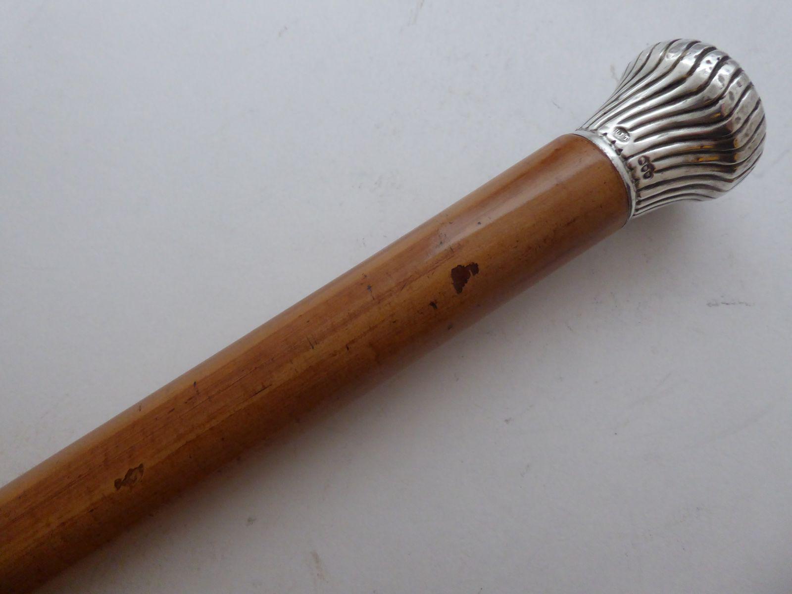 Victorian Walking Stick Cane 1887 Hallmarked Silver Pommel Malacca Shaft