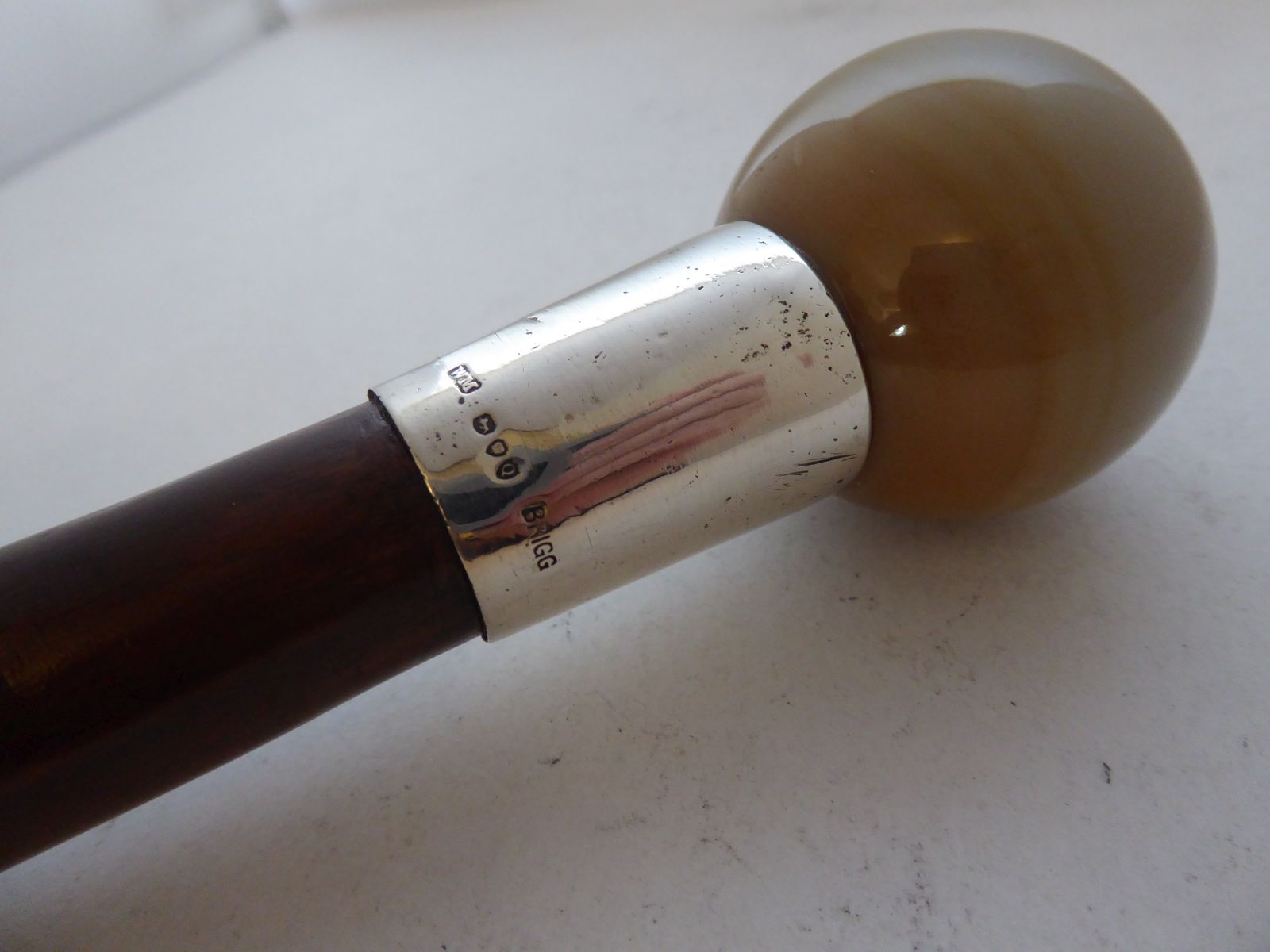Victorian Walking Stick Cane 1891 Silver Collar Hawthorn Shaft Brigg of London