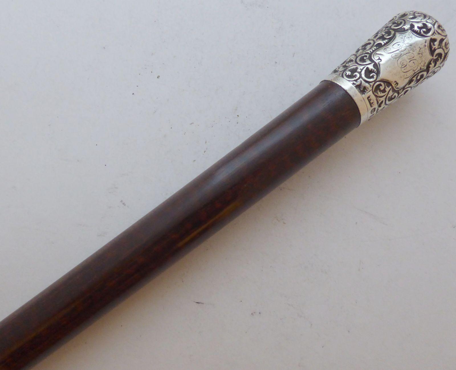 Victorian Walking Stick Cane 1894 Hallmarked Solid Silver Top Snakewood Shaft