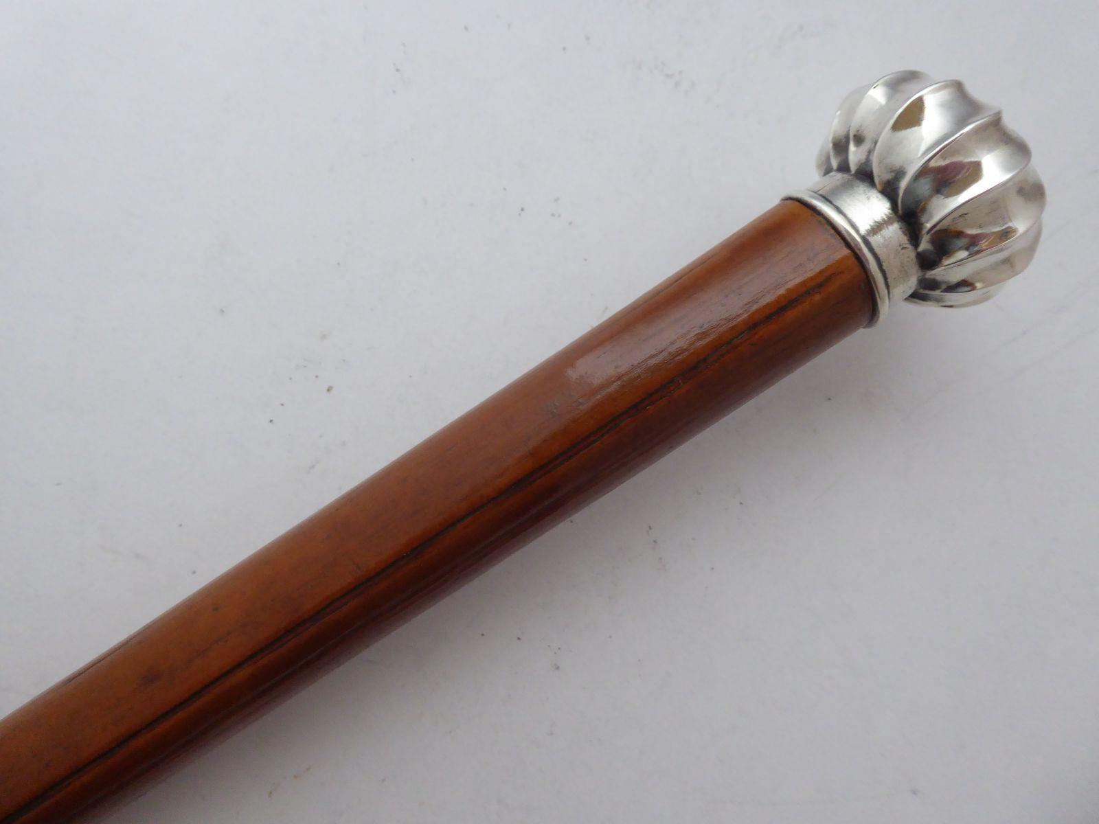 Victorian Walking Stick Cane 1895 Hallmarked Silver Pommel Malacca Shaft William Hutton