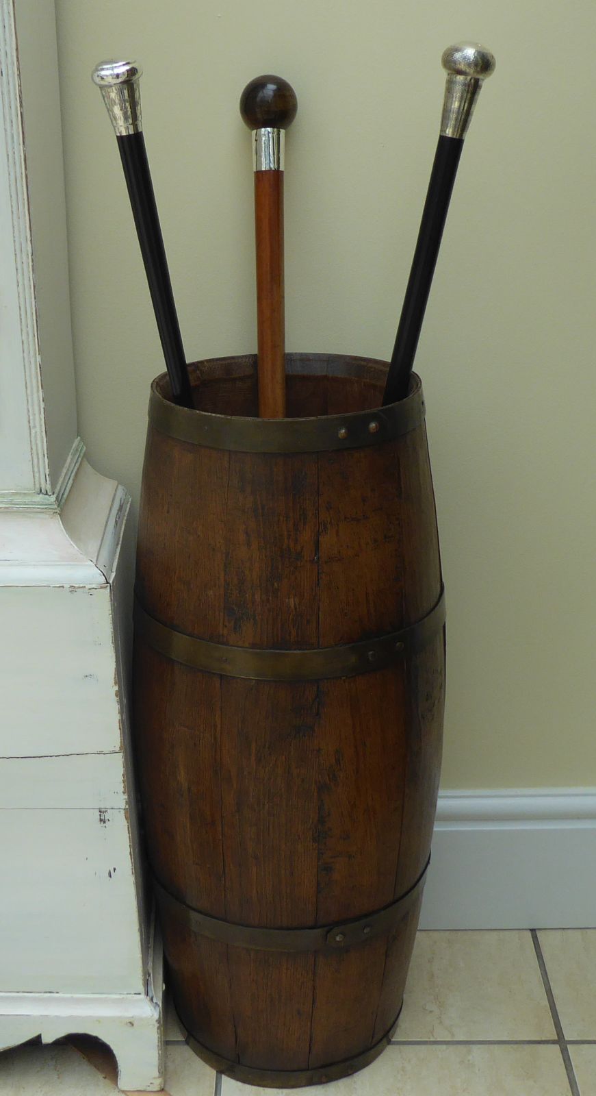Victorian Walking Stick Cane Coopered Oak Barrel Stick Stand c.1900