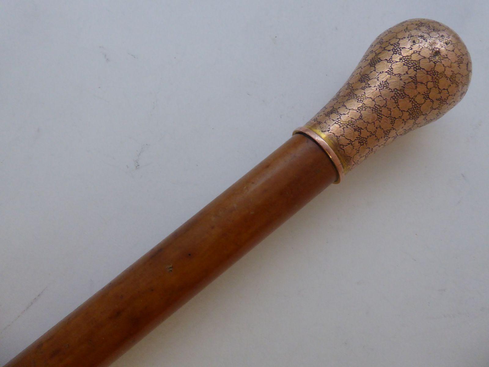 Victorian Walking Stick Cane Gold Over Copper Punchwork Engraving c.1880