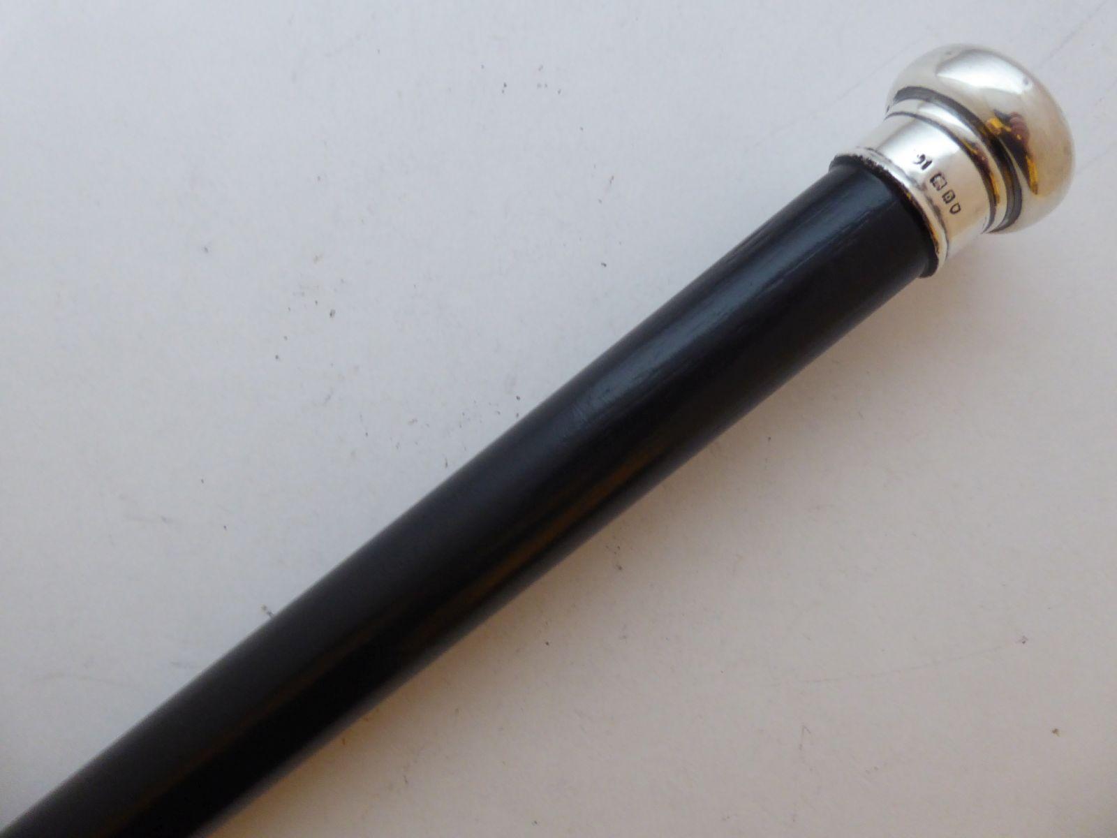 Victorian Walking Stick Cane London 1897 Solid Silver Pommel Ebonised Shaft