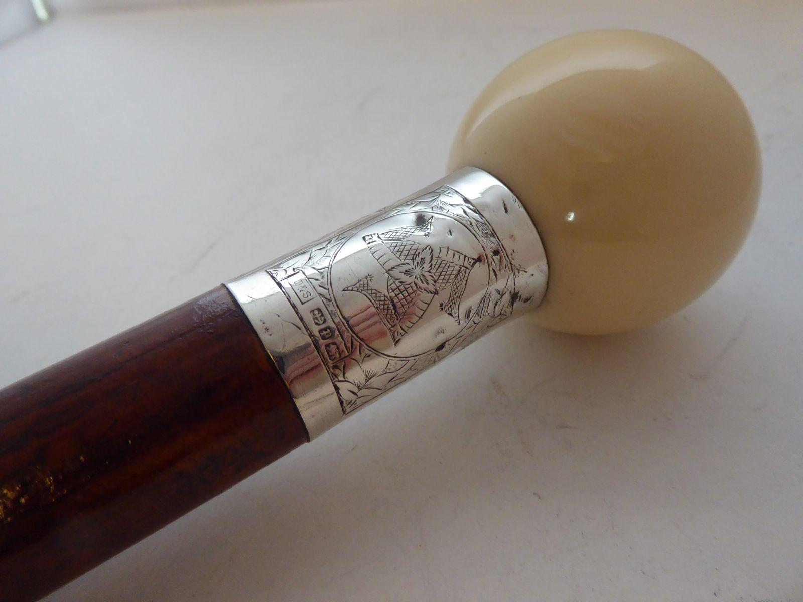 Victorian Walking Stick Cane Silver Collar Malacca Shaft Tagua Nut Isle of Man