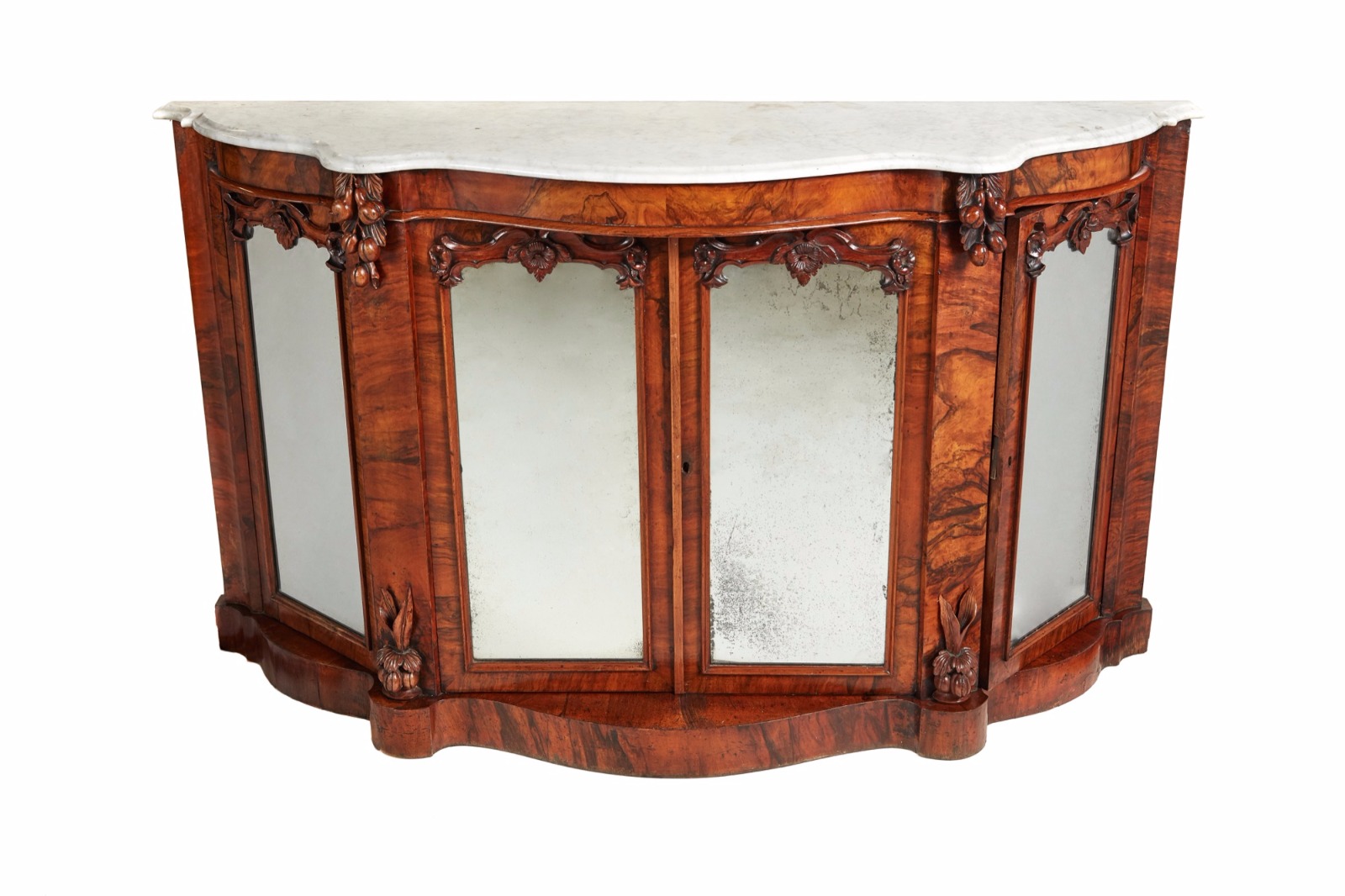 Victorian Walnut 4 Door Marble Top Credenza c.1860