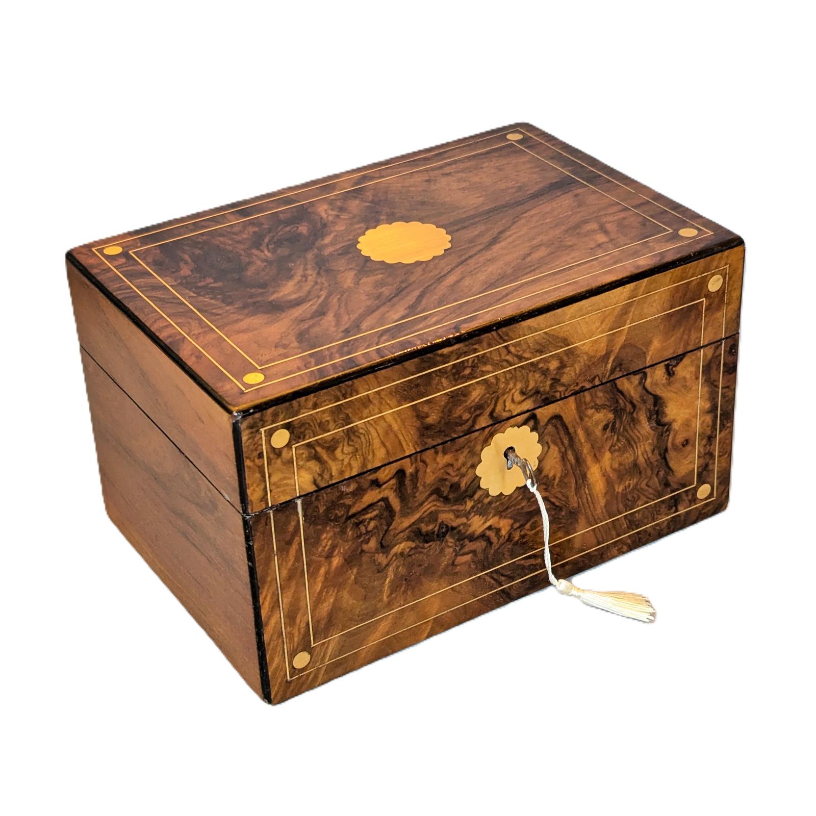 Victorian Walnut & Brass Inlaid Jewellery Box