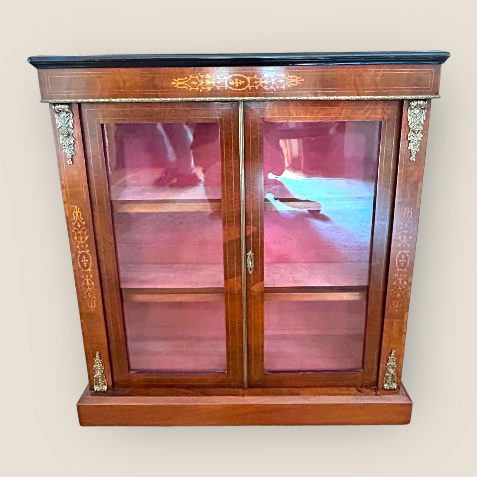 Victorian Walnut & Brass Inlaid Two Door Pier Cabinet