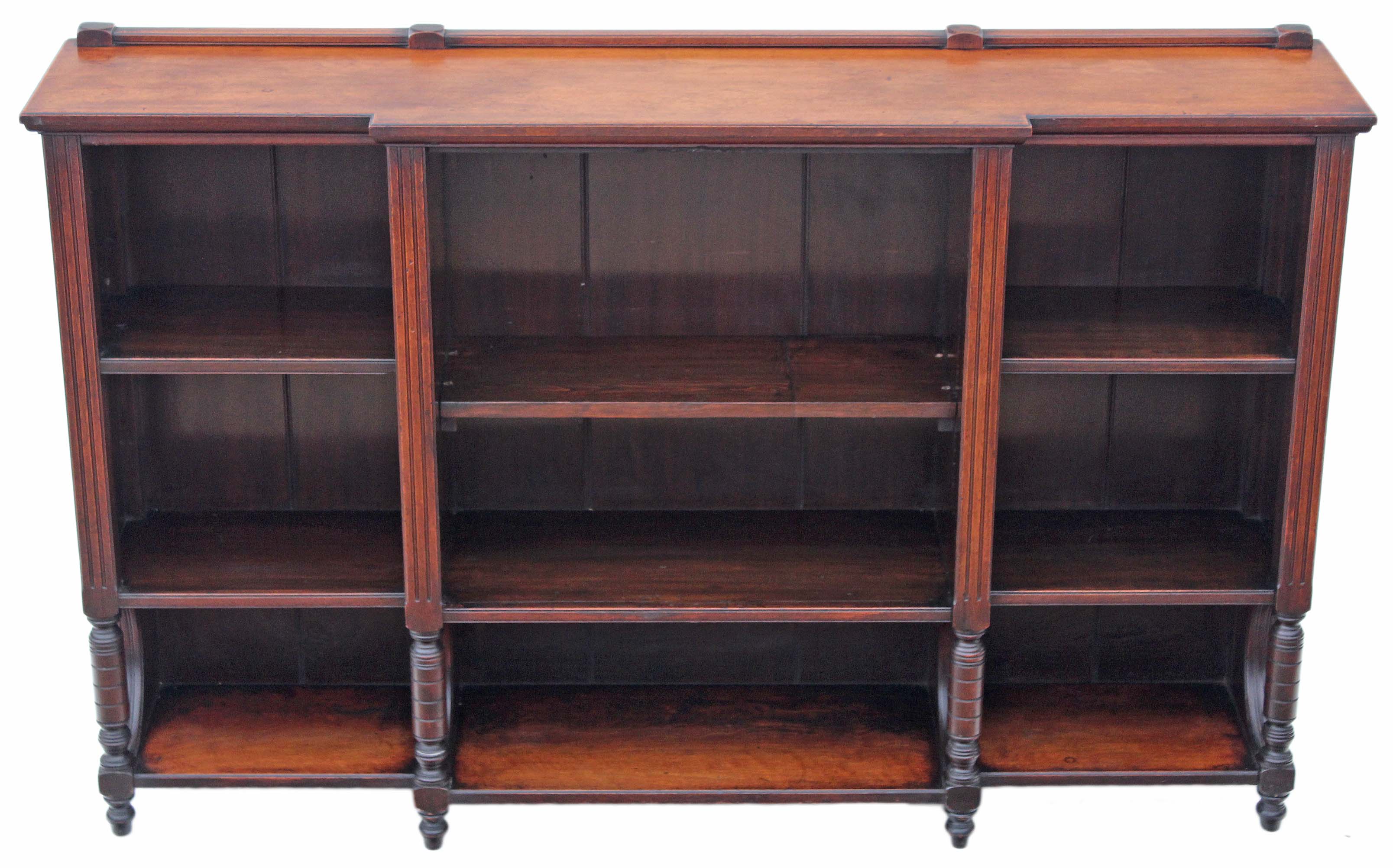 Victorian Walnut Breakfront Open Bookcase / Display Cabinet