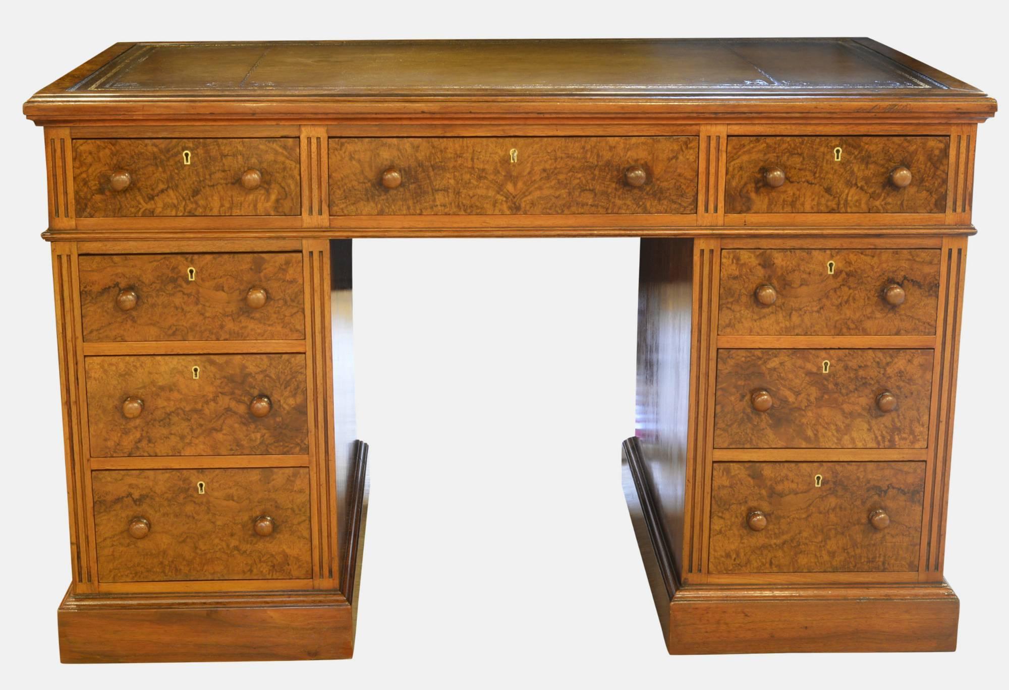 Victorian Walnut & Burr Walnut Pedestal Desk