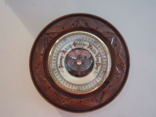 Victorian Walnut Carved Aneroid Barometer c.1890