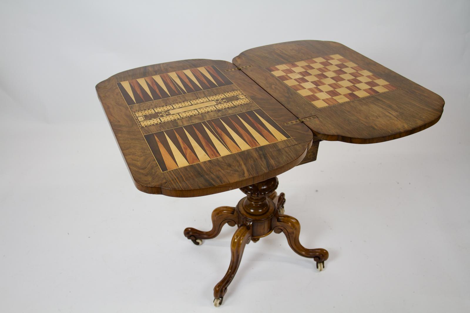 Victorian Walnut Carved & Inlaid Games Table (1 of 10)