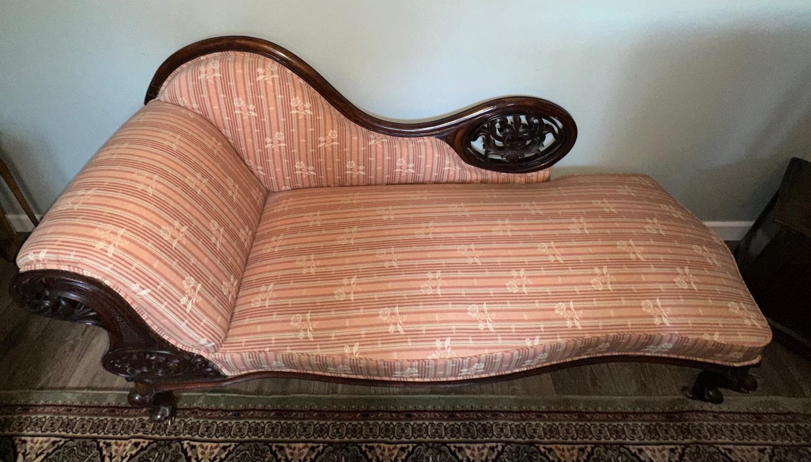 Victorian Walnut Carved Show Wood Framed Chaise Lounge