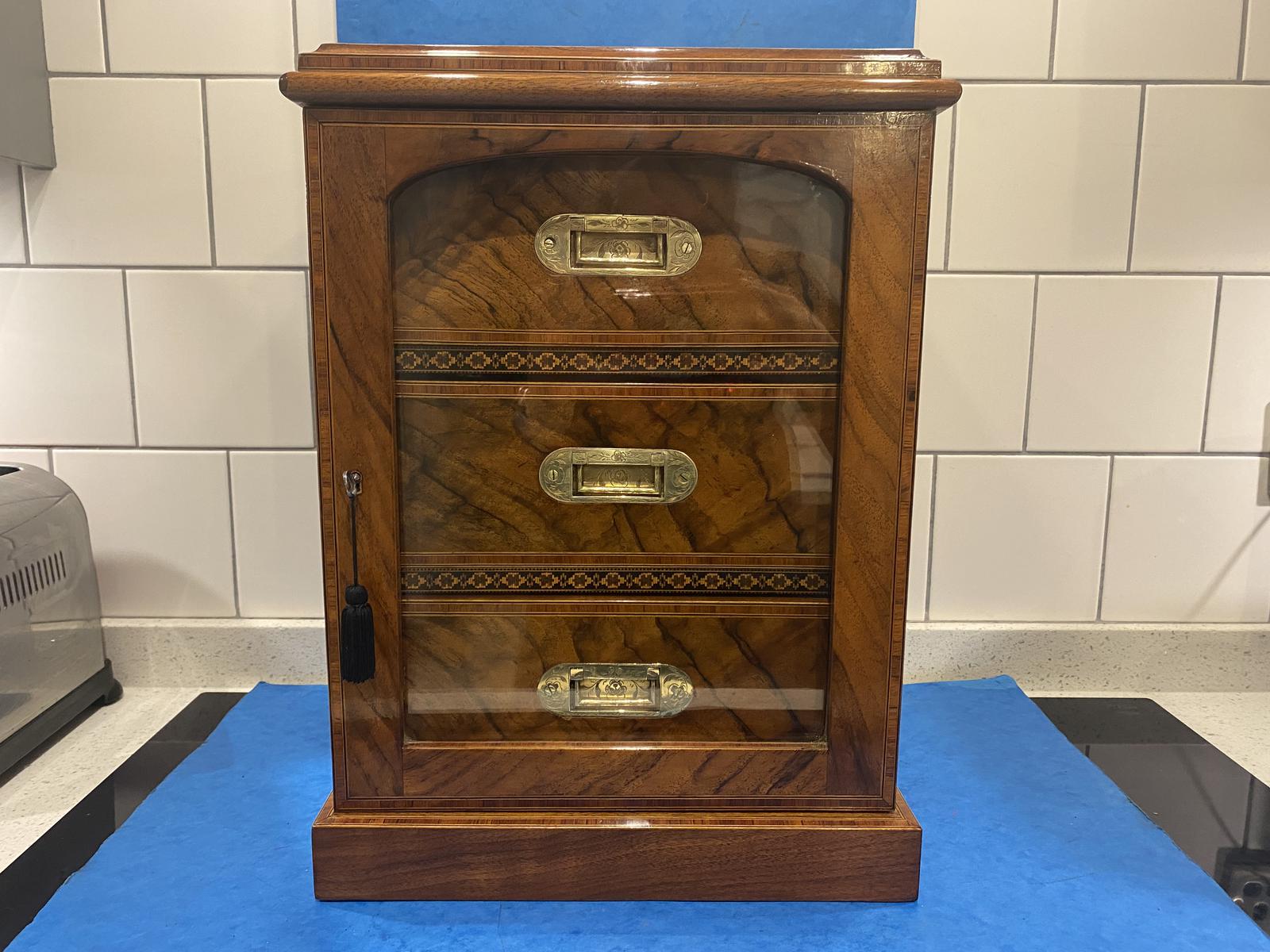 Victorian Walnut Cigar Cabinet With Tunbridge Ware Mosaic Inlay