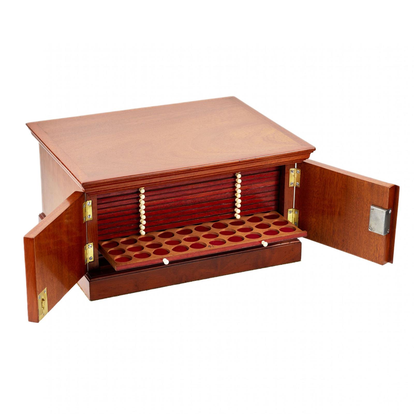 Victorian Walnut Coin and Medal Desktop Cabinet. 19th Century.