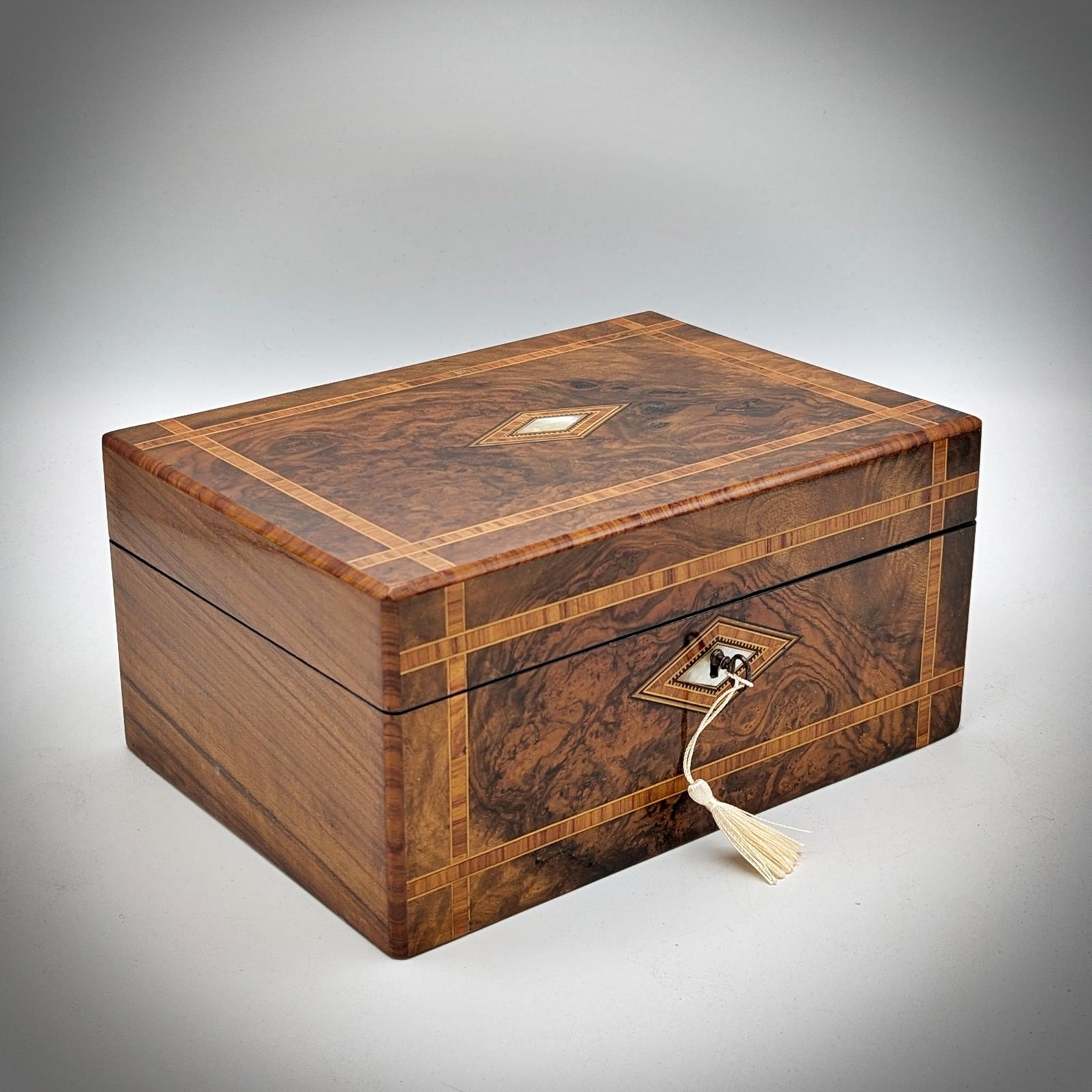 Victorian Walnut & Inlaid Jewellery Box