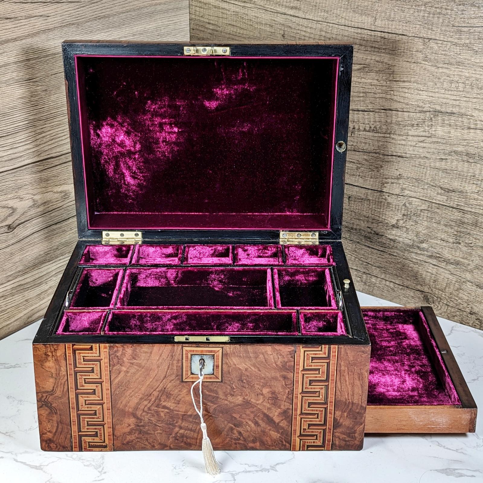 Victorian Walnut & Inlaid Jewellery Box with Drawer