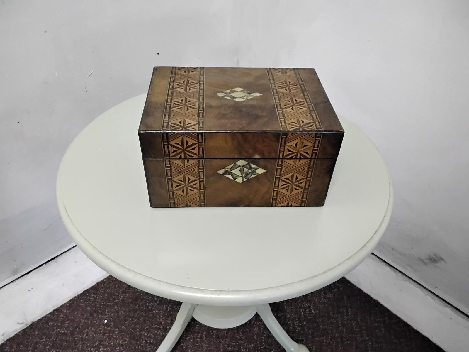 Victorian Walnut Inlaid Jewellery / Table Top Box
