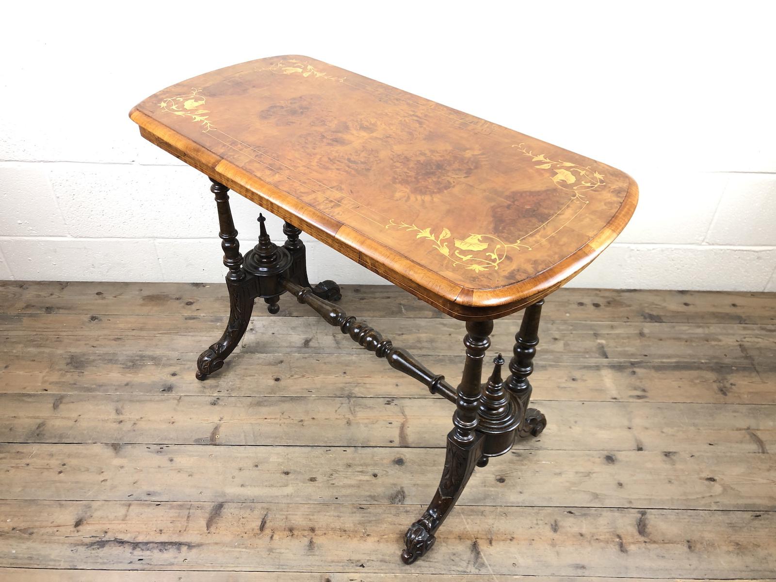 Victorian Walnut Inlaid Stretcher Table or Side Table (1 of 12)