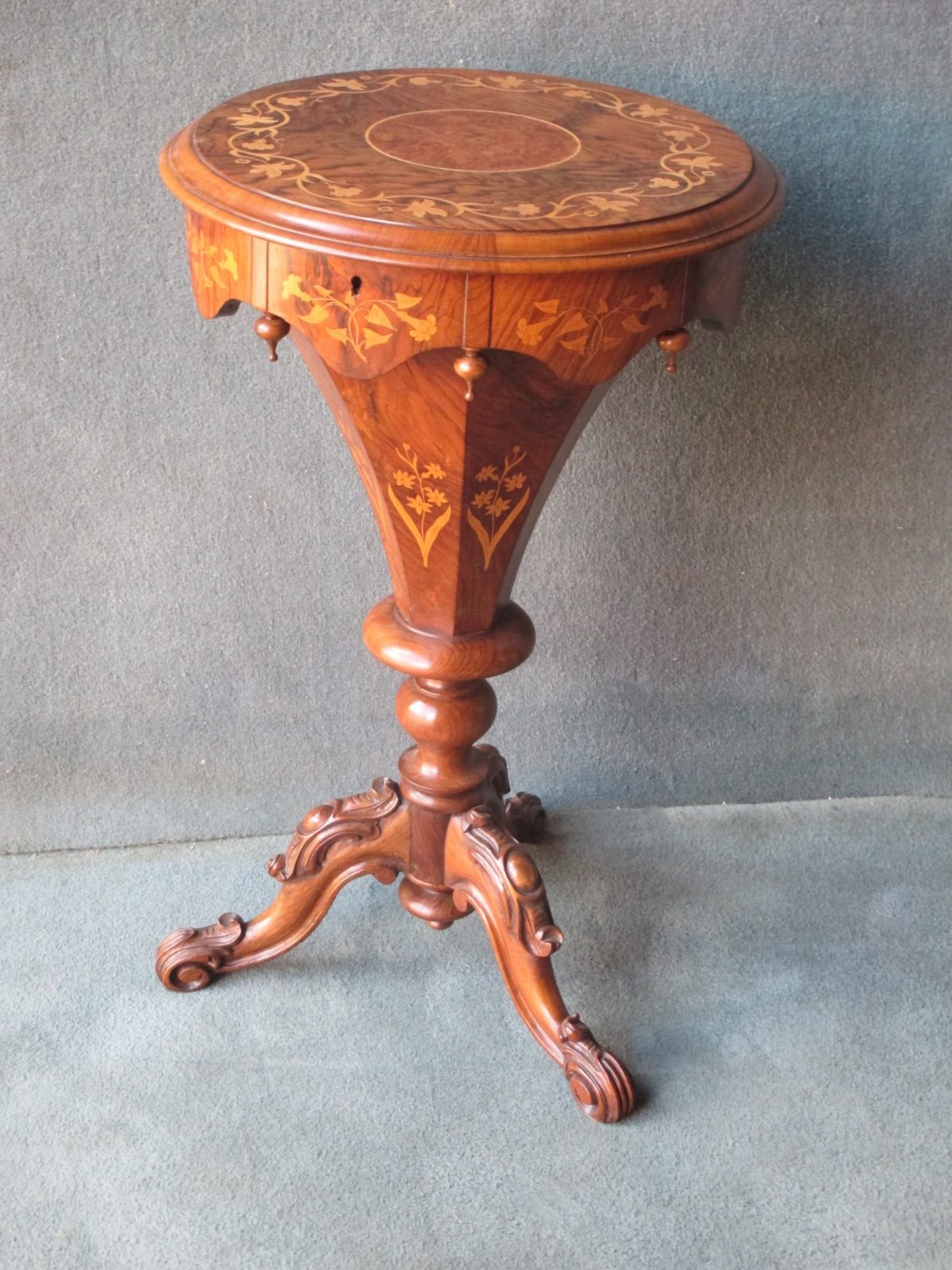 Victorian Walnut & Inlaid Trumpet Workbox C.1870