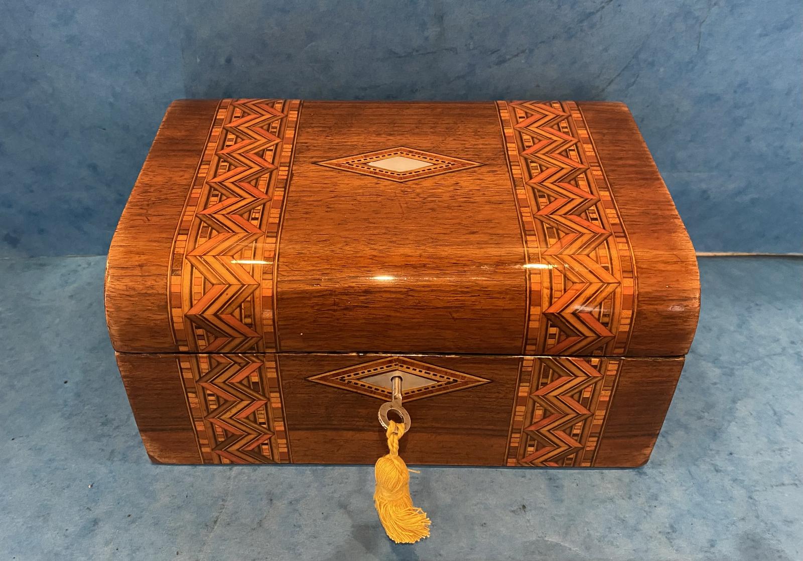 Victorian Walnut Jewellery Box With Tunbridge Ware Inlaid Bands