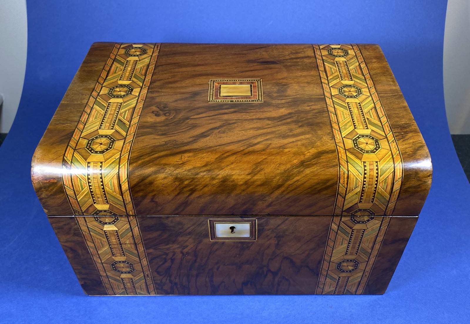 Victorian Walnut Jewellery Box With Tunbridge Ware Inlay