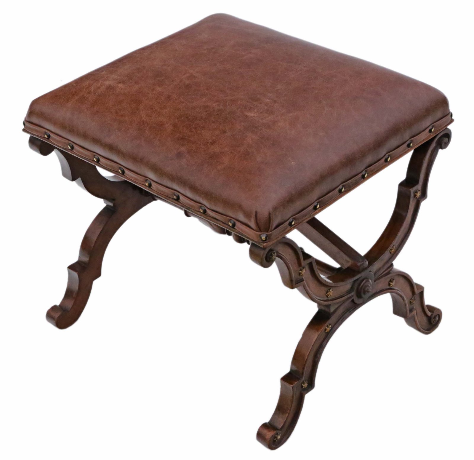 Victorian Walnut Leather X-Frame Stool Seat Foot (1 of 6)