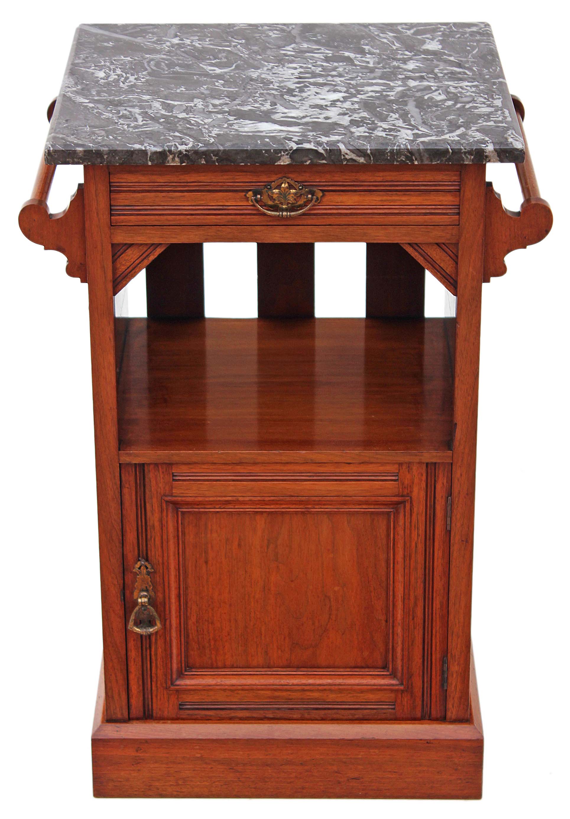 Victorian Walnut Marble Bedside Table Cupboard / Cabinet c.1899