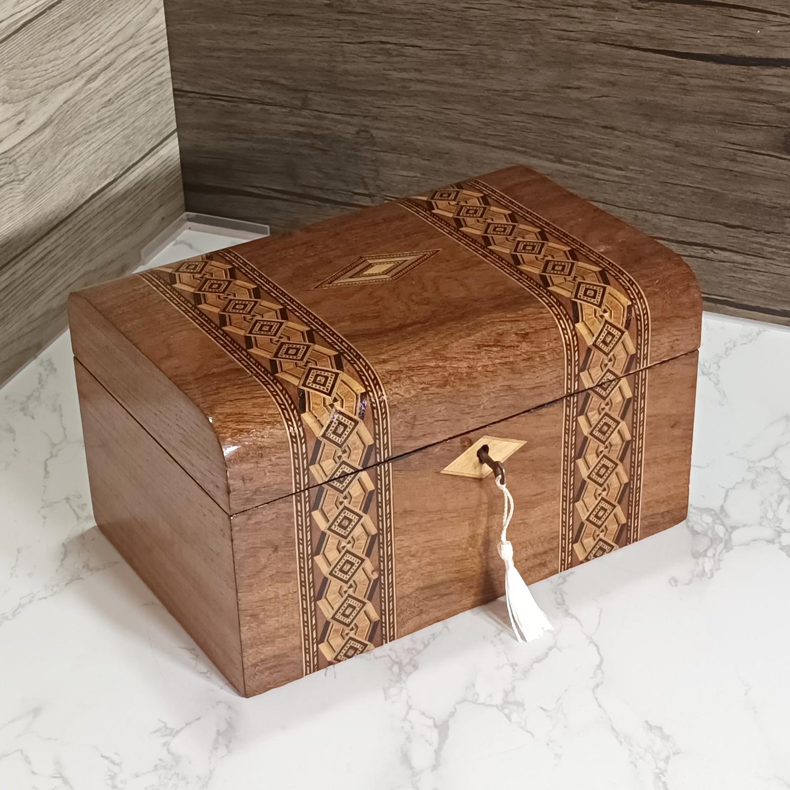 Victorian Walnut & Marquetry Inlaid Jewellery Box
