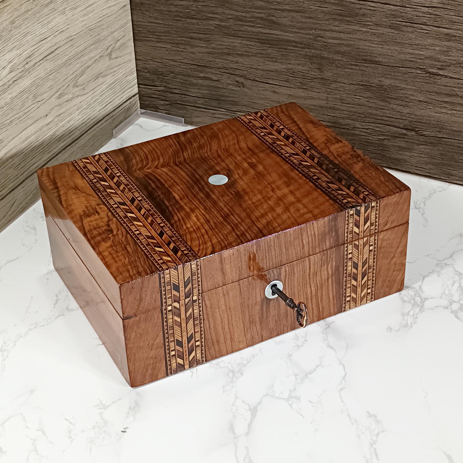 Victorian Walnut & Marquetry Inlaid Jewellery Box