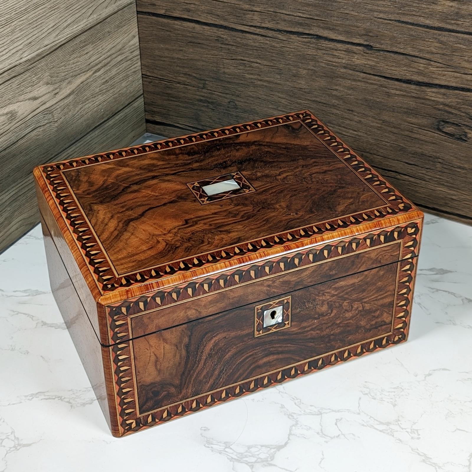 Victorian Walnut & Marquetry Inlaid Jewellery Box