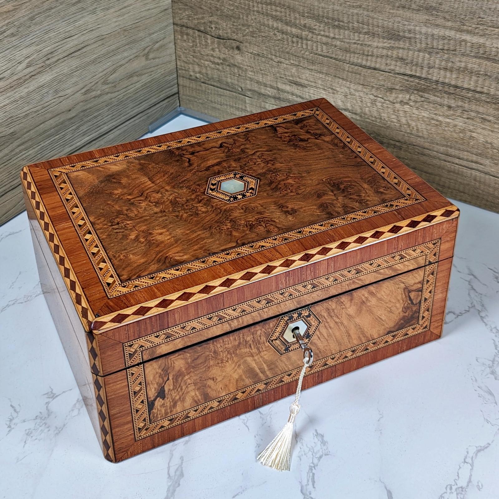Victorian Walnut & Marquetry Inlaid Jewellery Box