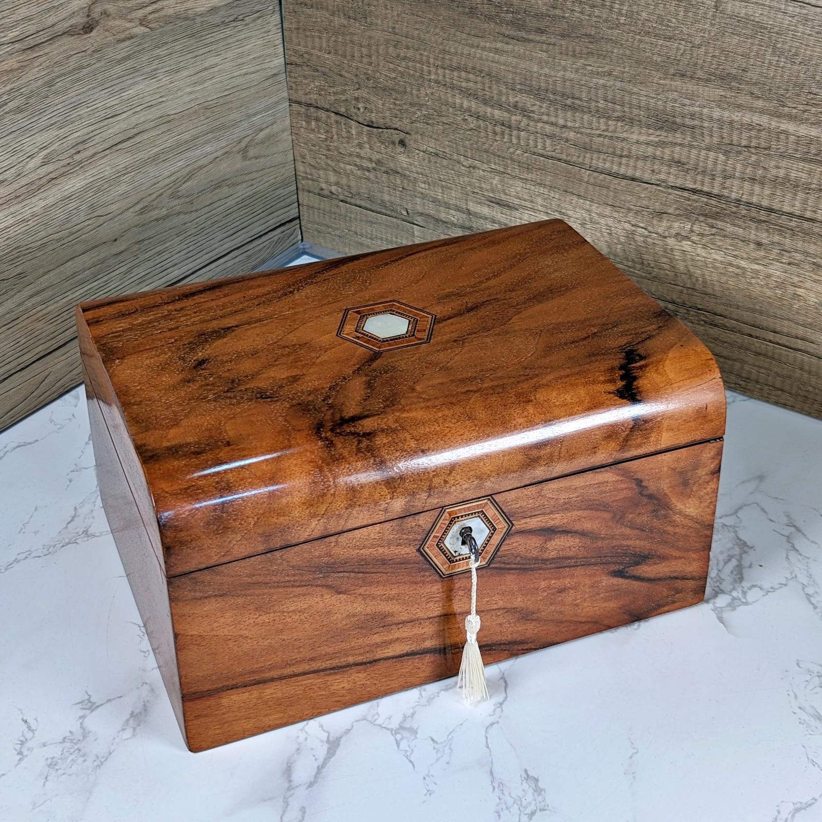 Victorian Walnut & Marquetry Inlaid Jewellery Box
