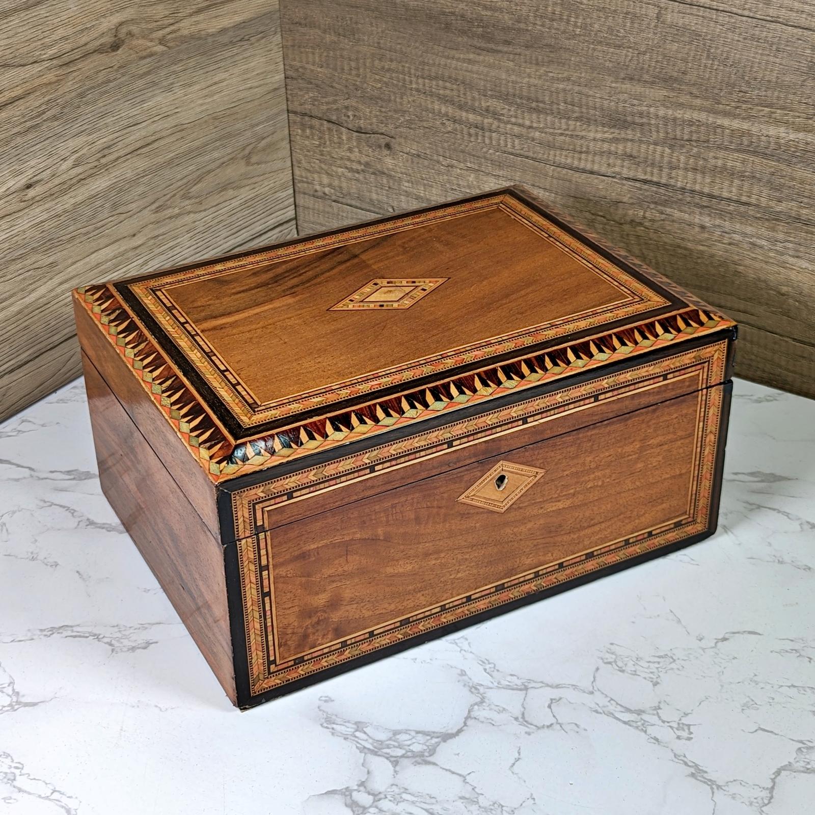 Victorian Walnut & Marquetry Inlaid Jewellery Box