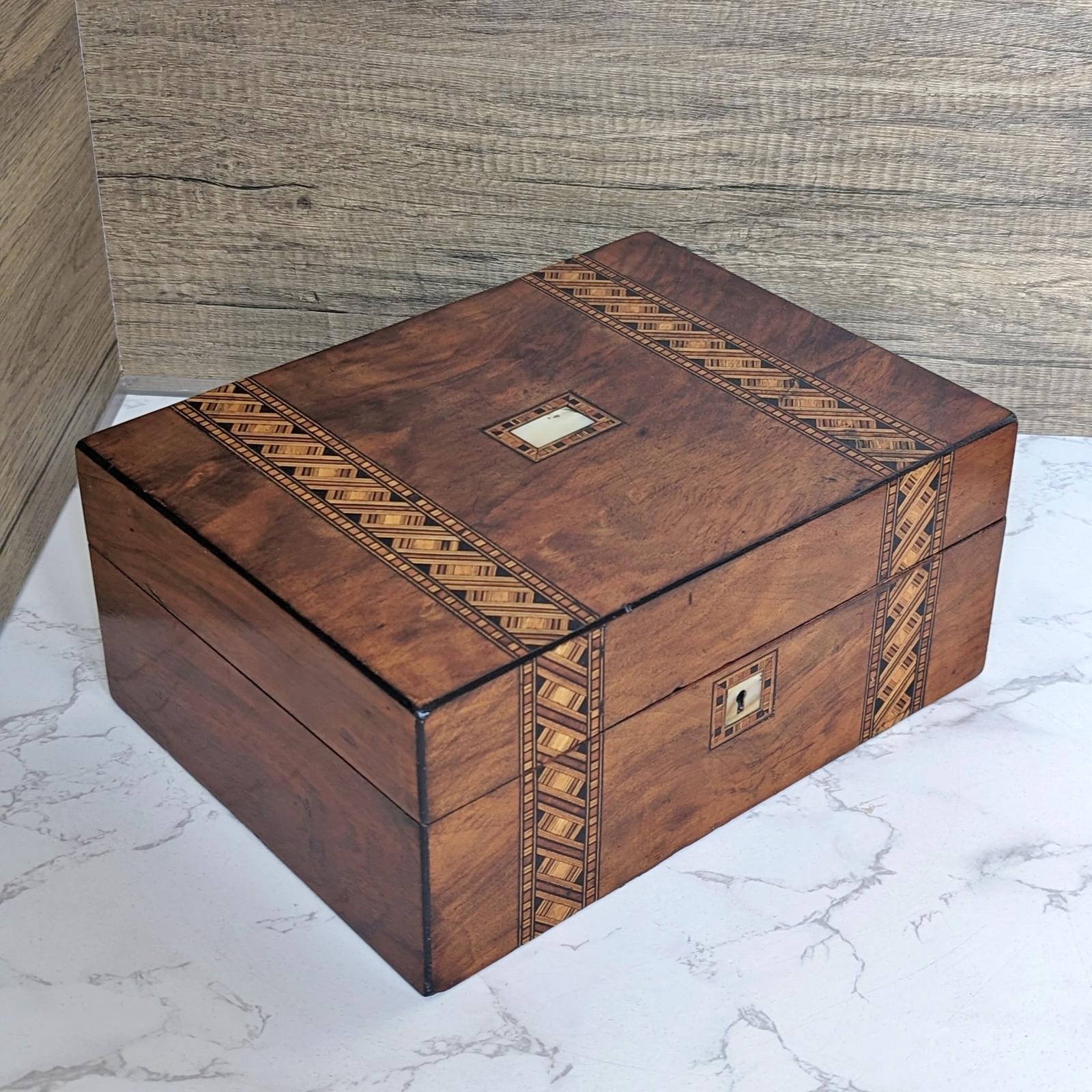 Victorian Walnut & Marquetry Inlaid Jewellery Box