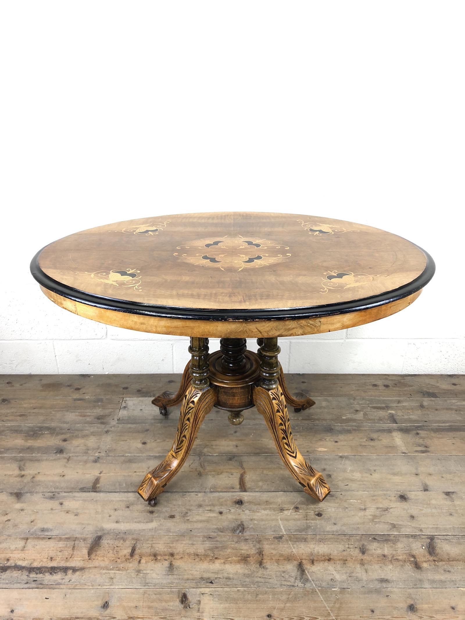 Victorian Walnut & Mixed Woods Inlaid Centre Table (1 of 11)