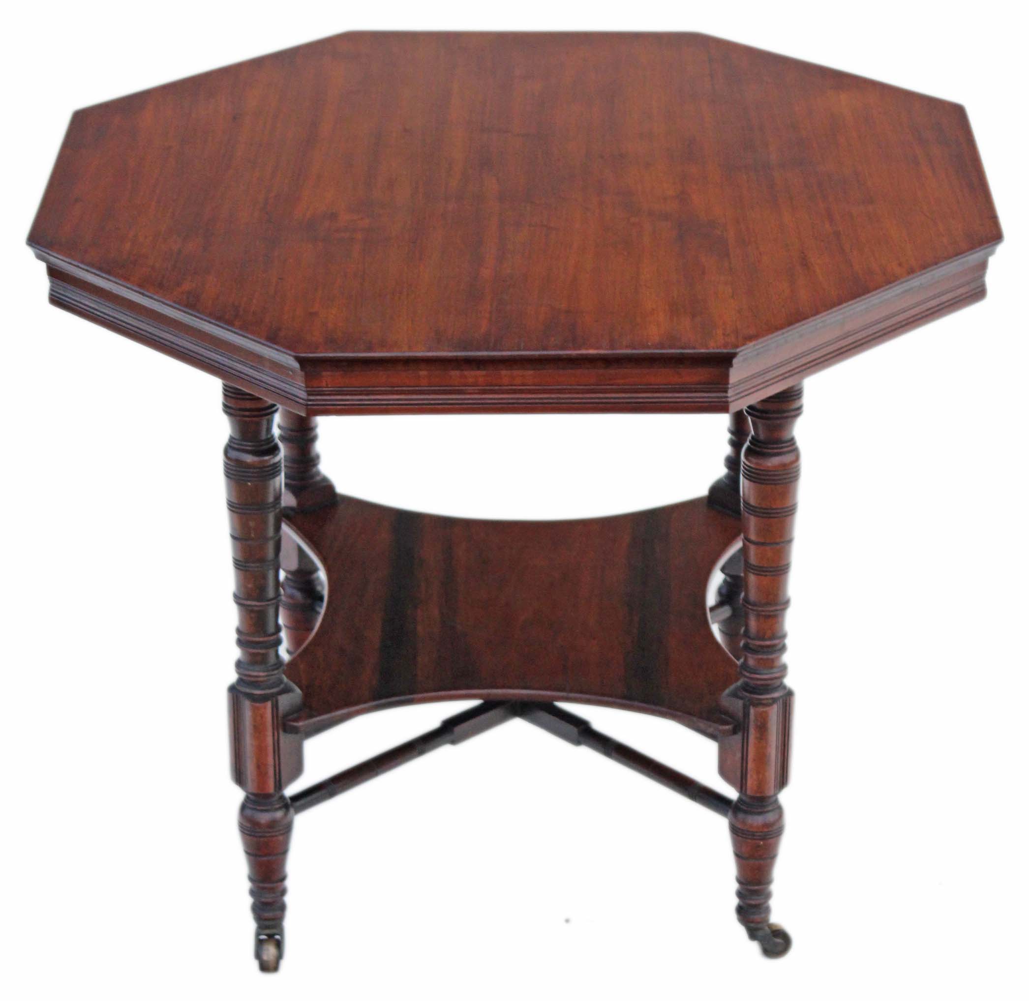 Victorian Walnut Octagonal Centre Window Table / Side Table / Occasional Table / Loo Table