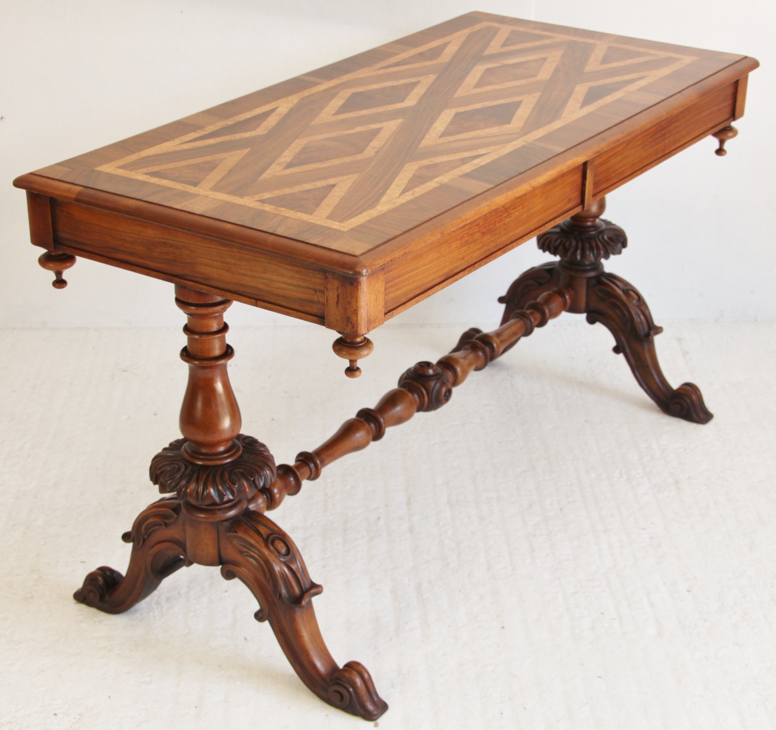 Victorian Walnut Parquetry Library Table c.1860 (1 of 1)