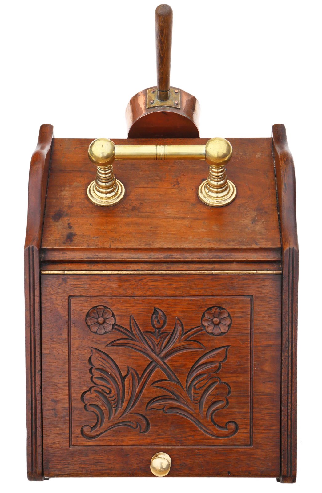 Victorian Walnut Perdonium Coal Scuttle Box or Cabinet C.1900 (1 of 1)