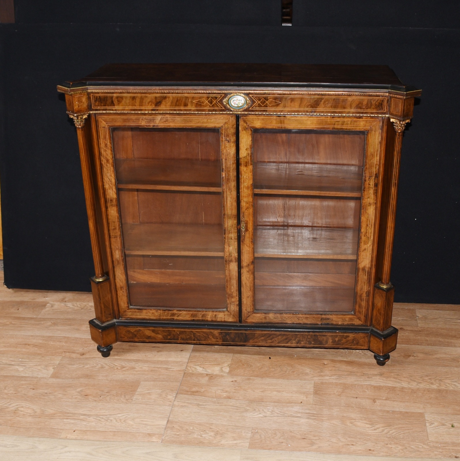 Victorian Walnut Pier Cabinet Glass Display