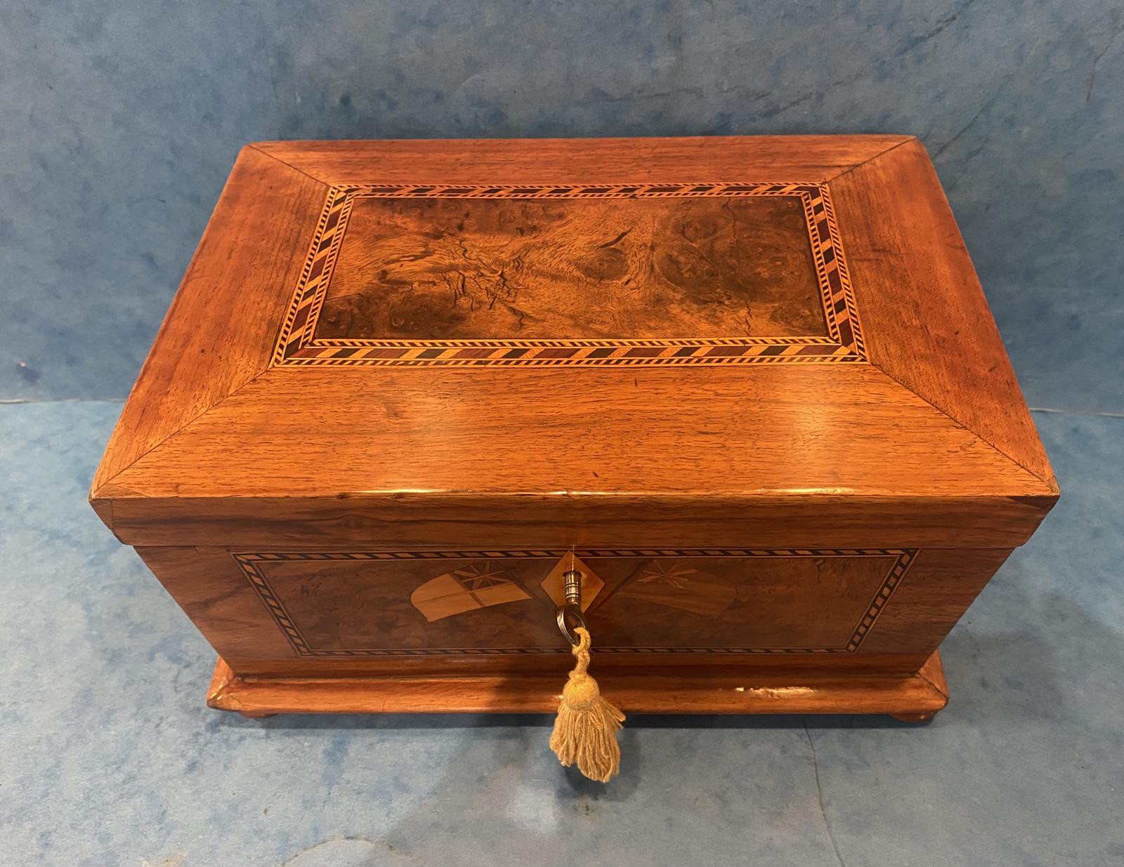 Victorian Walnut Portsea Tea Caddy Featuring Tunbridge Ware Inlay