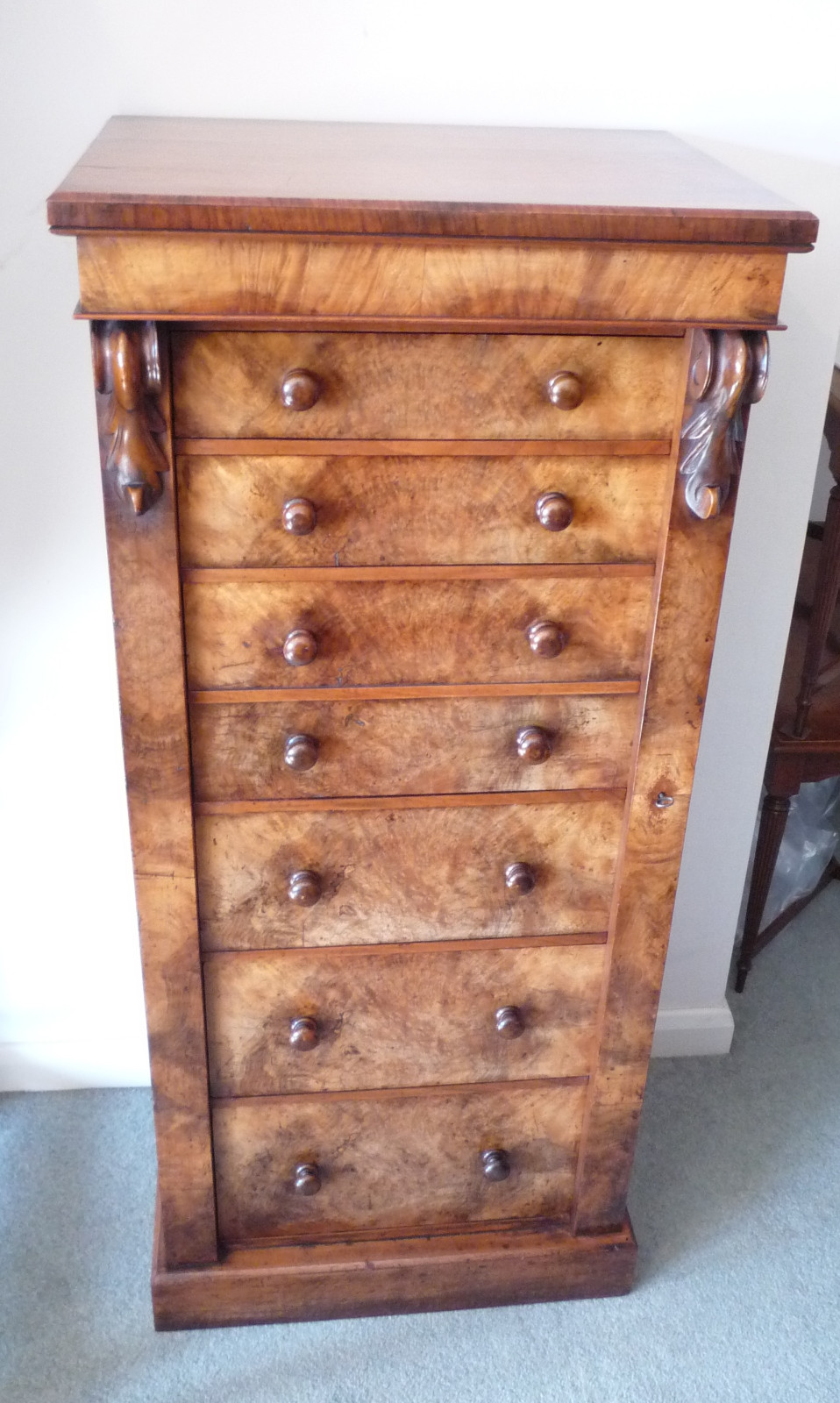 Victorian Walnut Secretaire Wellington Chest c.1860