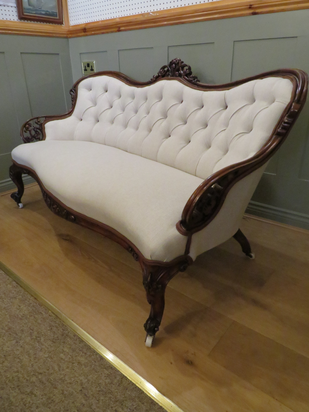 Victorian Walnut Sofa Restored & Re-Upholstered