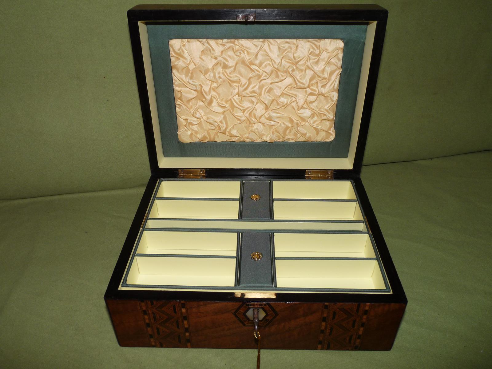 Victorian Walnut Tunbridge Style Jewellery Box + Tray c.1880