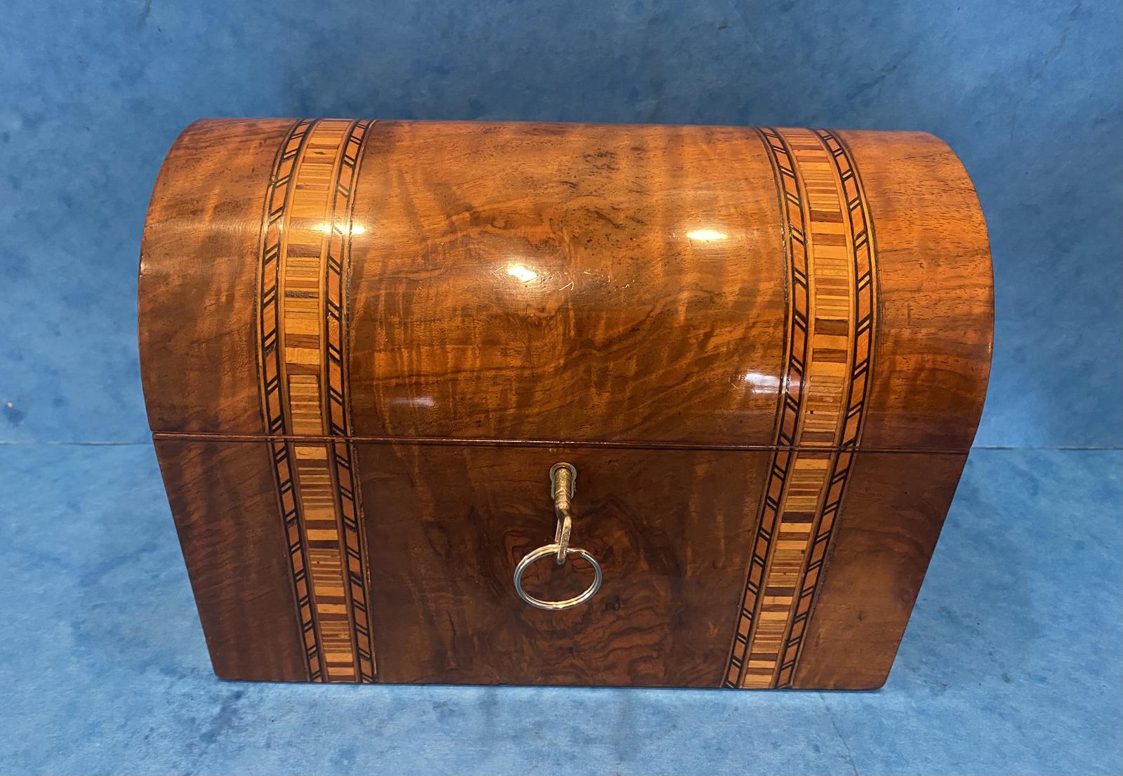 Victorian Walnut Tunbridge Ware Inlaid Tea Caddy