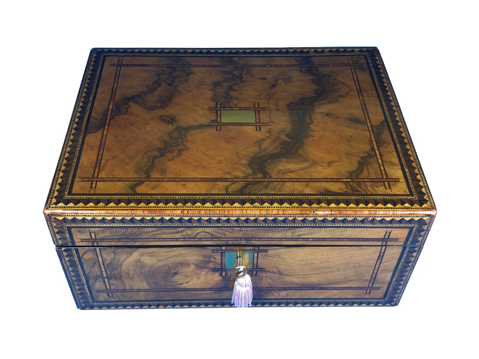 Victorian Walnut Tunbridge Ware Jewellery Box